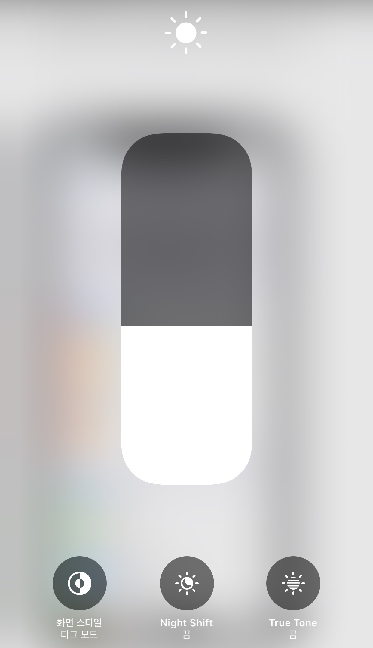 | 제어센터를 열어서 화면밝기 바를 꾹 누르기 -> TrueTone 디스플레이 on/off 확인 |