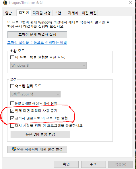 들어가면 일반-호환성-디지털 서명-보안-자세히-이전 버전 탭이 있을텐데