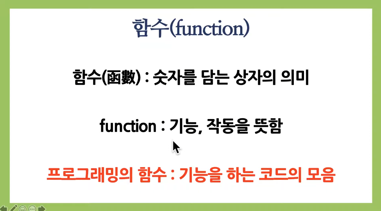 함수 函數 함 함 셀 수 function. input output 입력 출력이 있습니다.