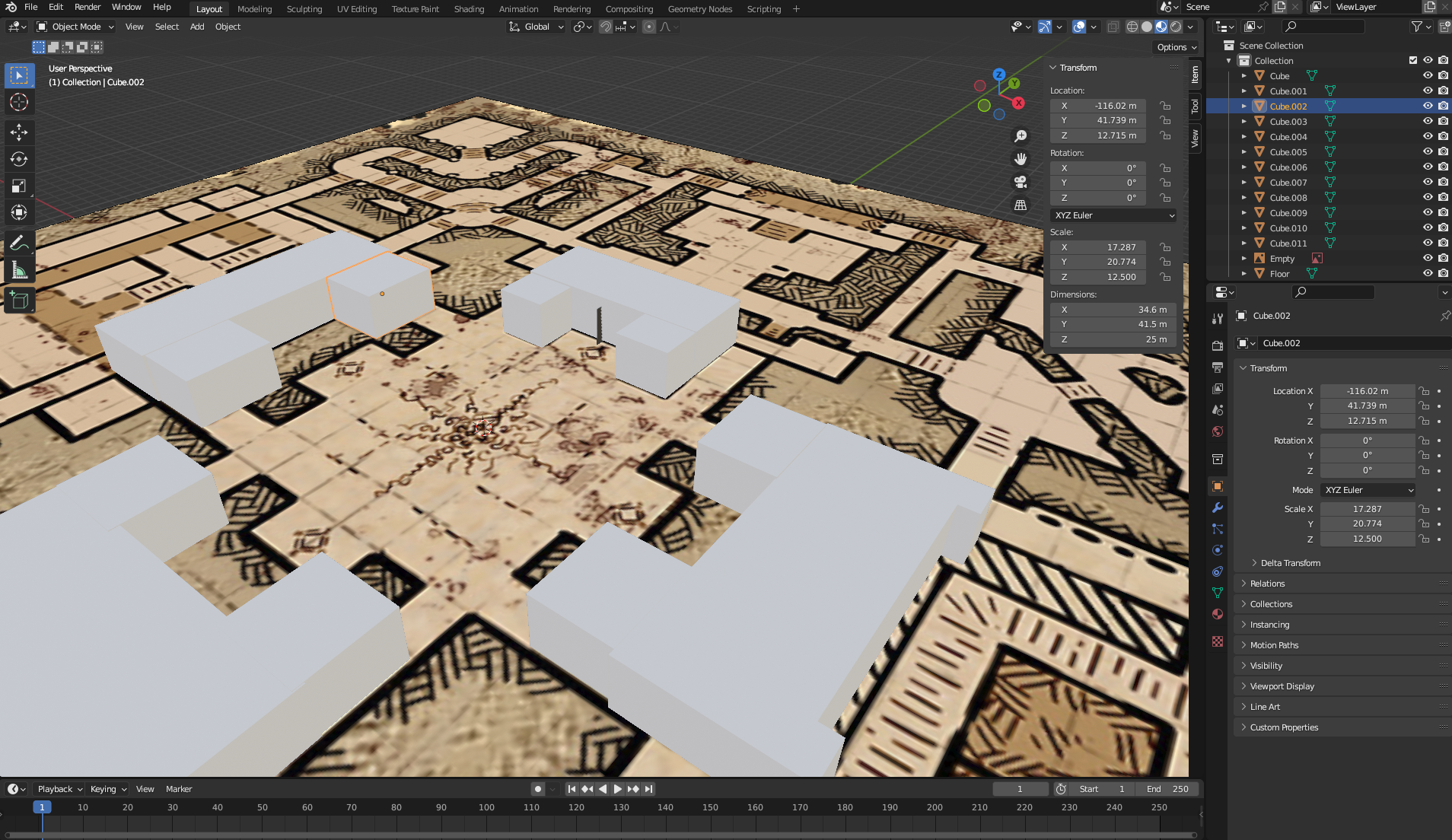 블렌더3d에서 다크앤다커 미니맵 사진을 기반으로 벽을 배치하고 세우고 언리얼 엔진으로 옮기기->